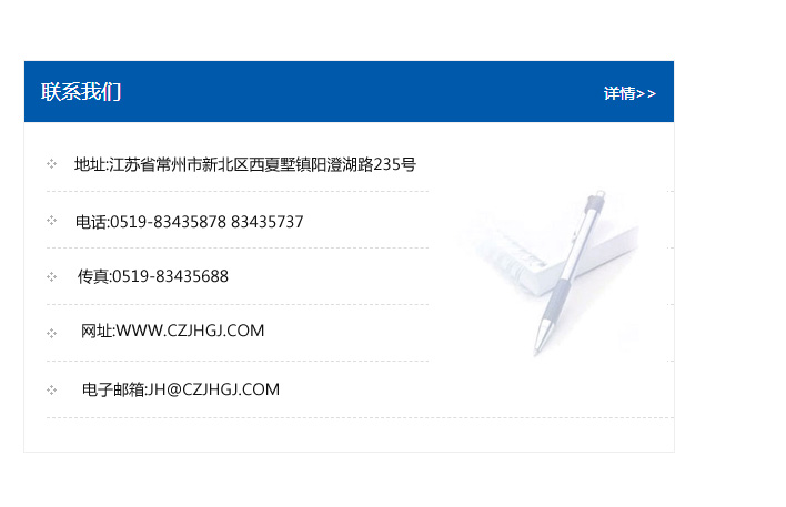 地址:常州市新北區(qū)友邦商務大廈1幢16、17層  電話:0519-85101652  傳真:0519-85112595  郵編:213022  網址:www_cz-jiayue_cn.ybjjl.com  郵箱:xiajifengaa@163.com